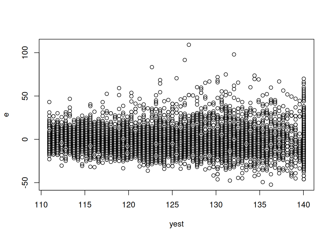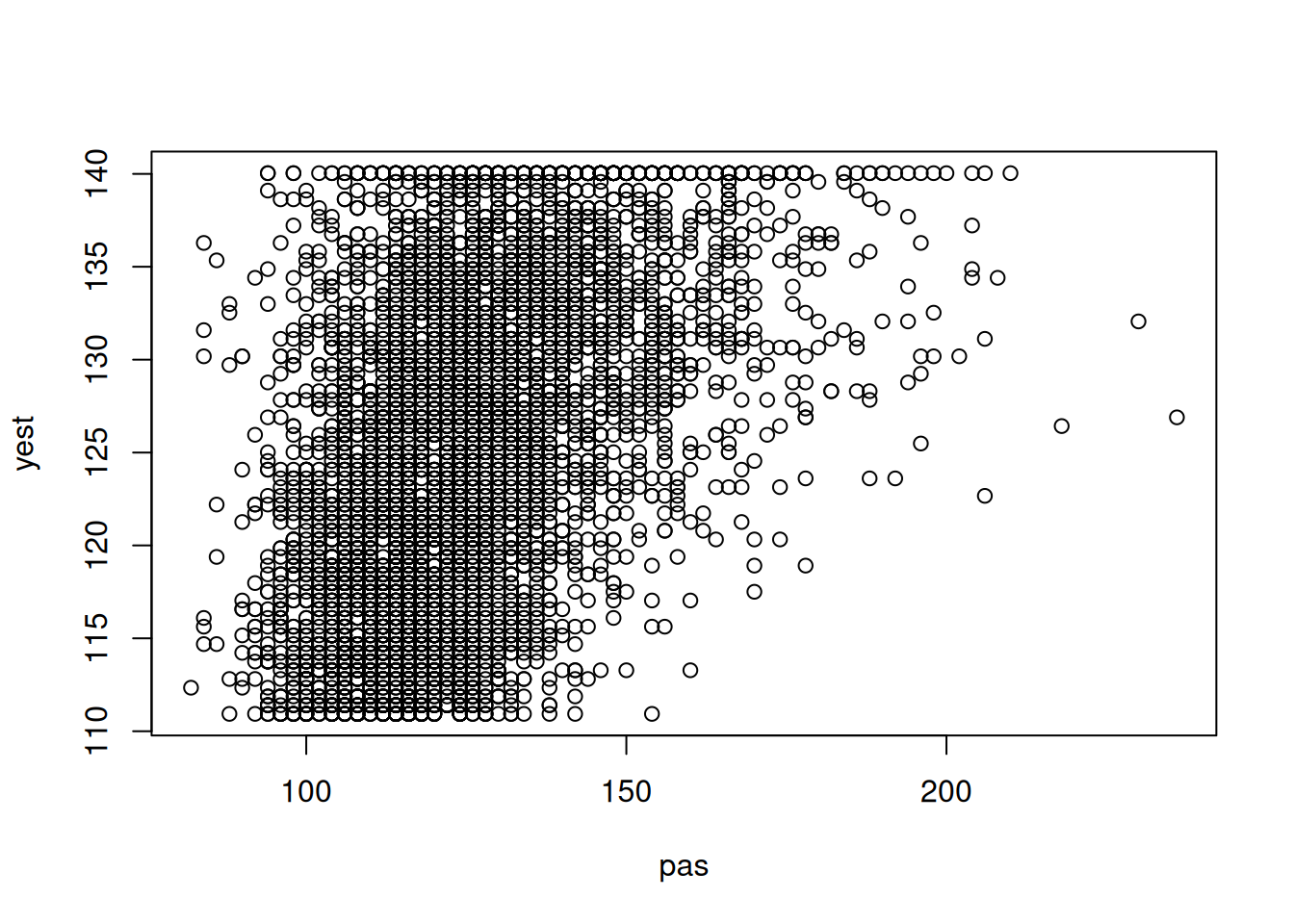 pas <- dbx$BPXSY1yest <- tension_edad$fitted.valuesplot(pas, yest)